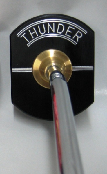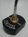 - Golf head machined out of aircraft aluminum (black anodized fishish) with a brass insert on top.